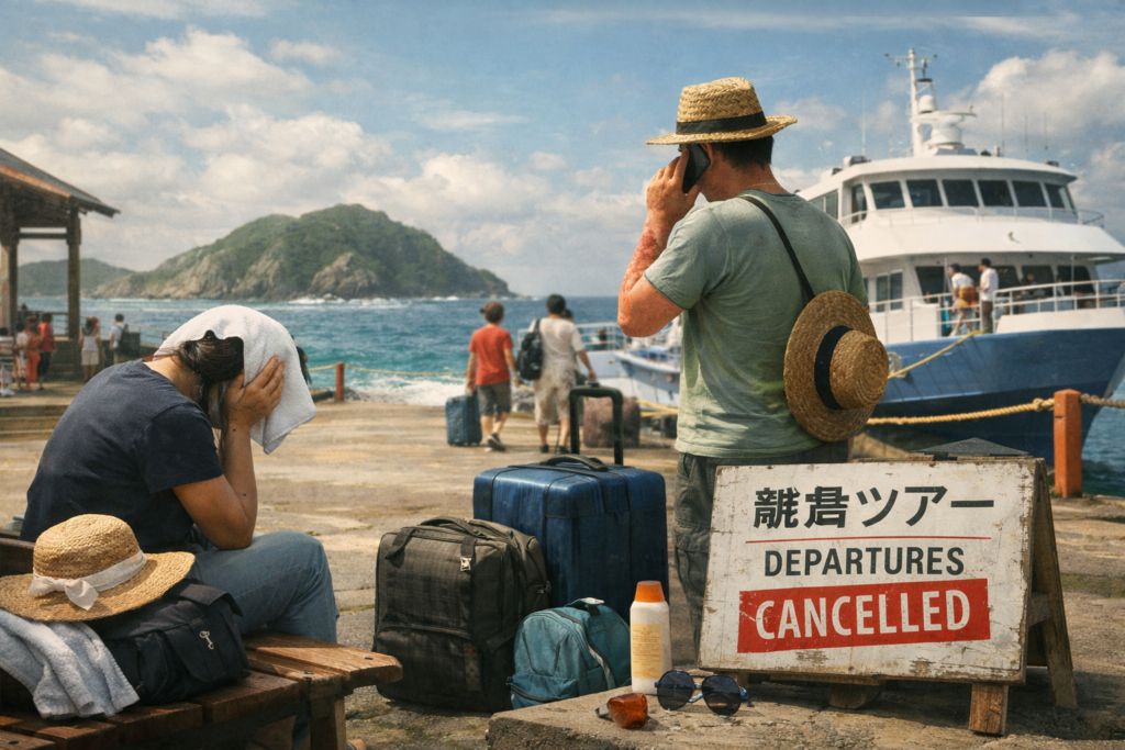 それから、離島には行ったらあかんよ。嵐が来るからね。無理に行こうとしたらお母さん体調不良なるよ。