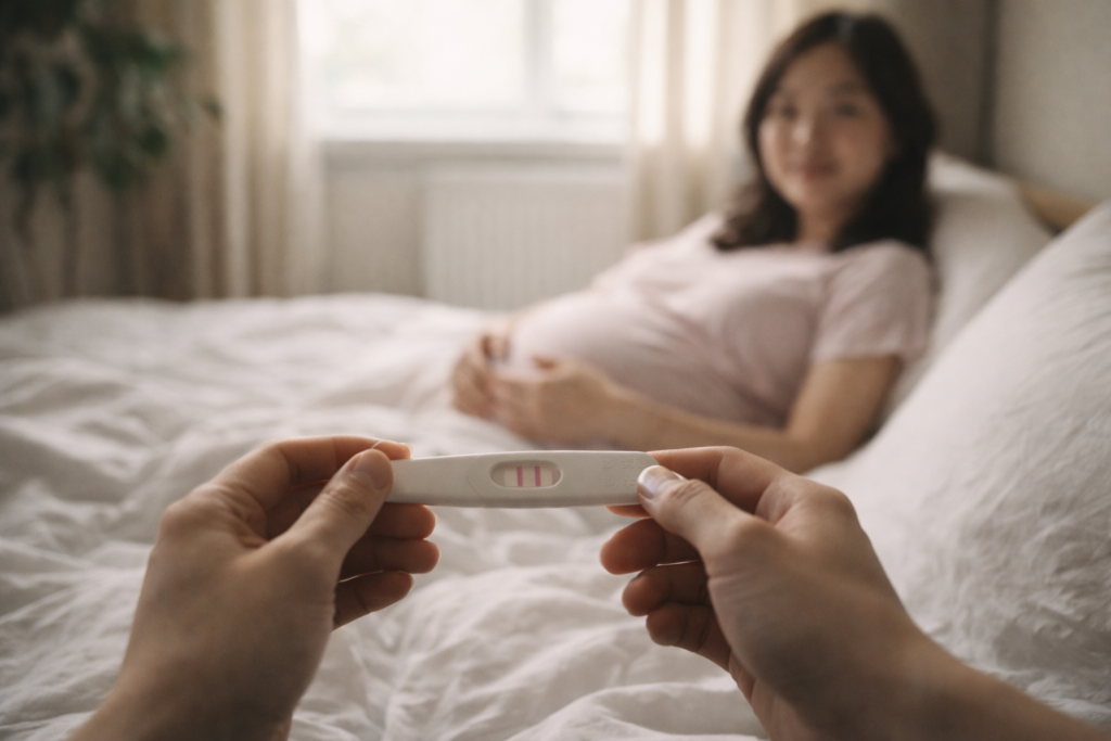 (中略)妊娠検査薬だと陽性だったから、多分……妊娠してる。